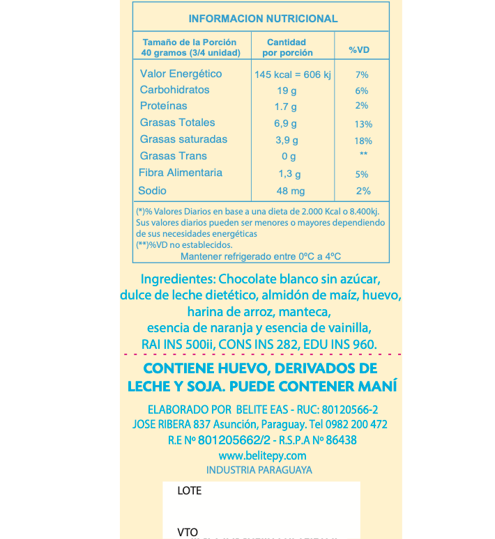 ALFAJOR RELLENO DE DULCE DE LECHE DIET CON COBERTURA DE CHOCOLATE BLANCO