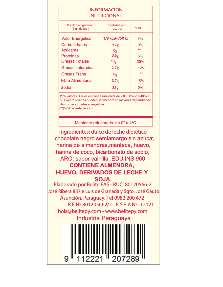 ALFAJORES DE HARINA DE ALMENDRAS RELLENO DE DULCE DE LECHE DIET CON COBERTURA DE CHOCOLATE NEGRO SEMIAMARGO