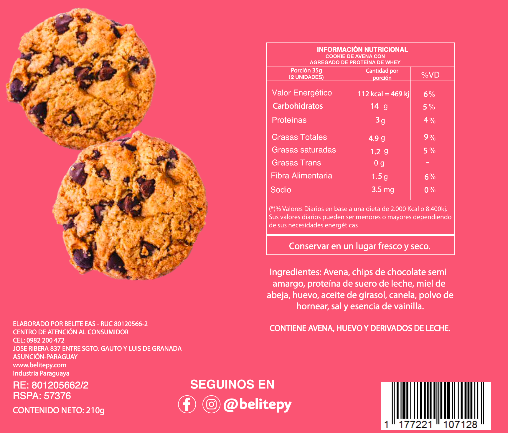GALLETAS DE AVENA CON CHISPAS DE CHOOCLATE SEMIAMARGO Y PROTEINA DE SUERO DE LECHE